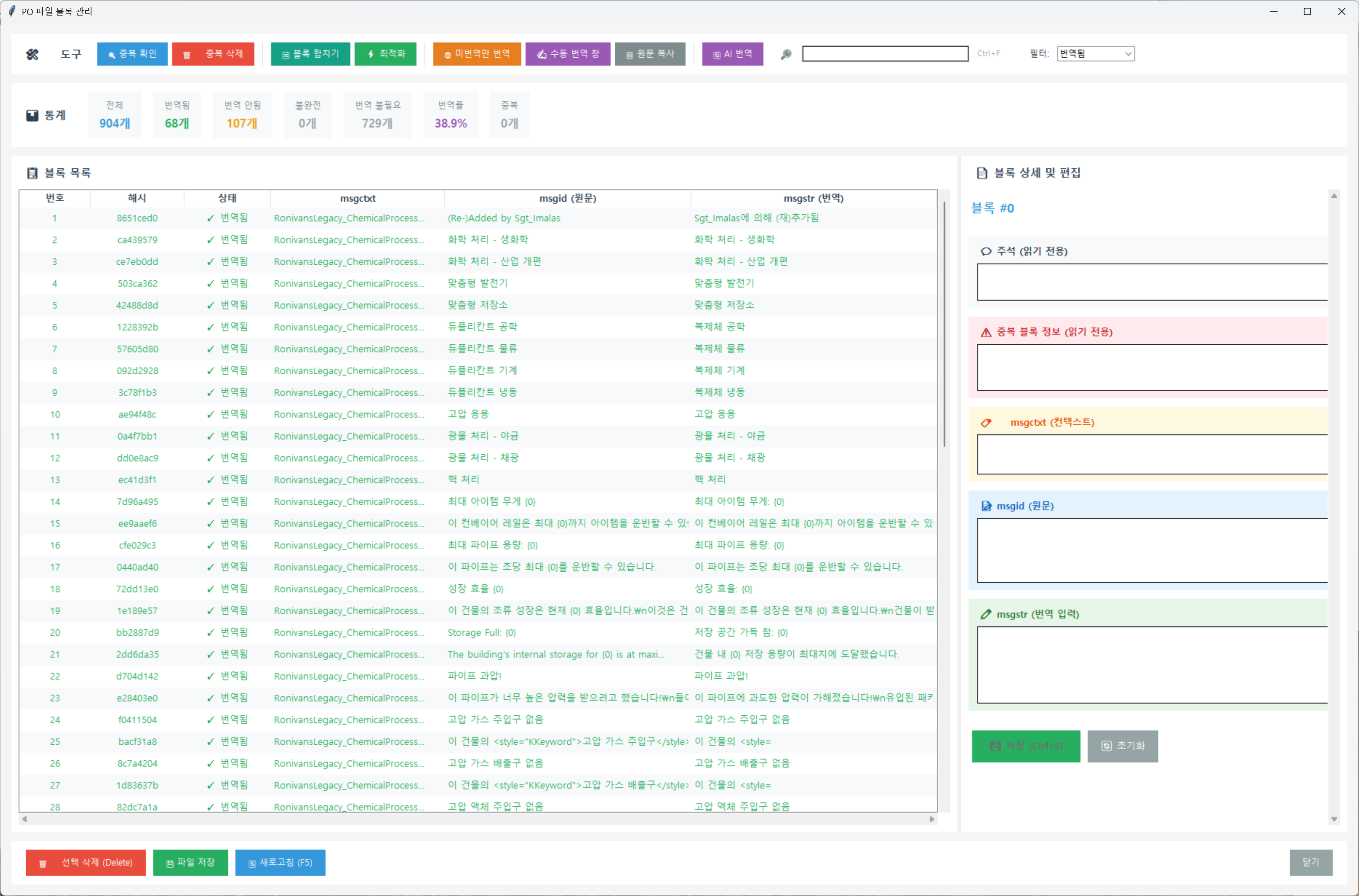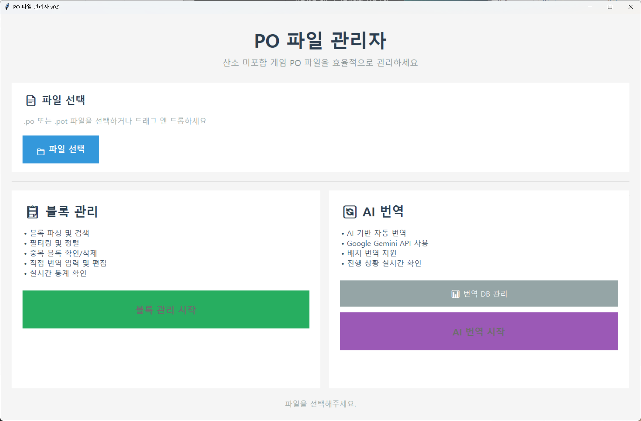 - 파일을 불러옵니다. 그러면 [블록 관리] 와 [AI 번역] 부분이 활성화 됩니다.