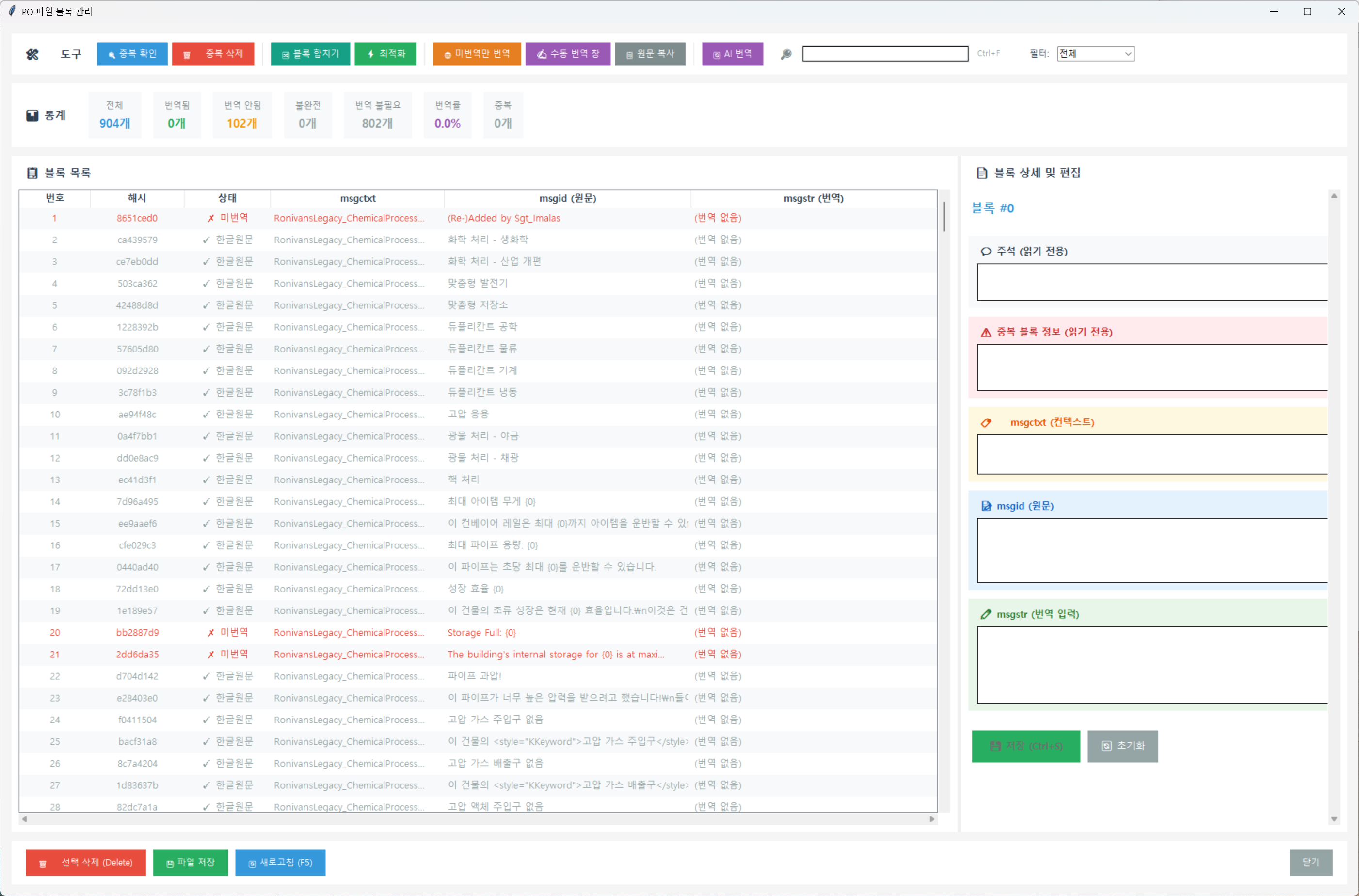 - 불러온 파일이 이미 한글을 일부 지원하고 있어 미번역 부분이 몇개 안 되네요.