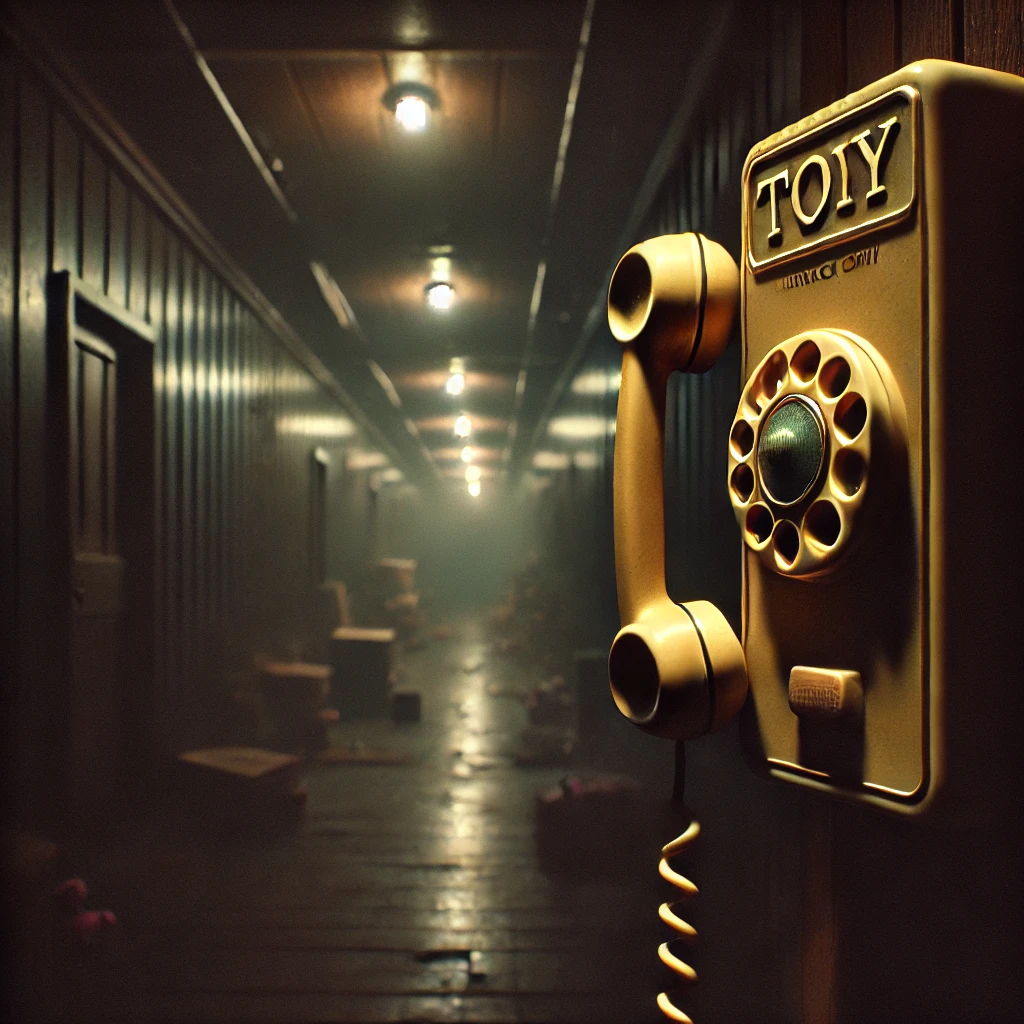 멀리, 벽에 부착된 낡은 전화기가 보였어.