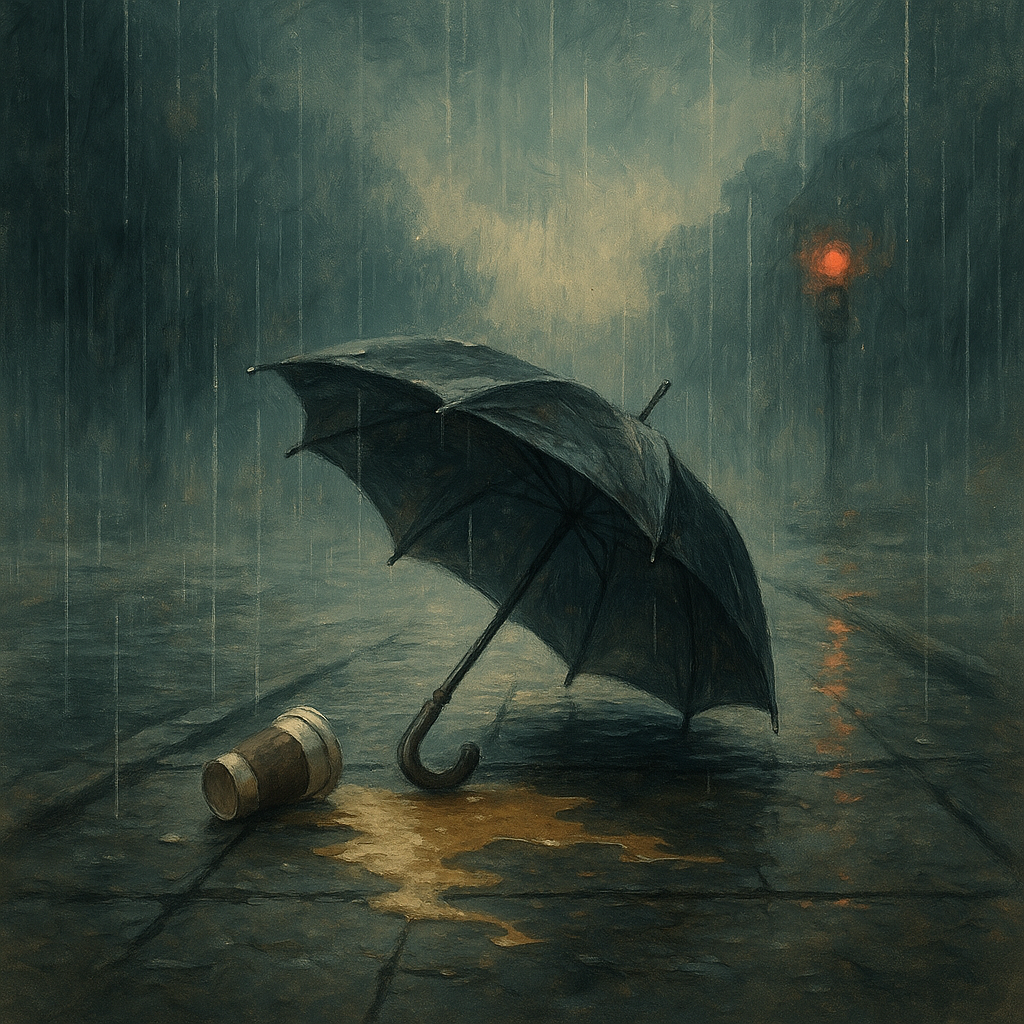 커피는 쏟고, 우산은 없고